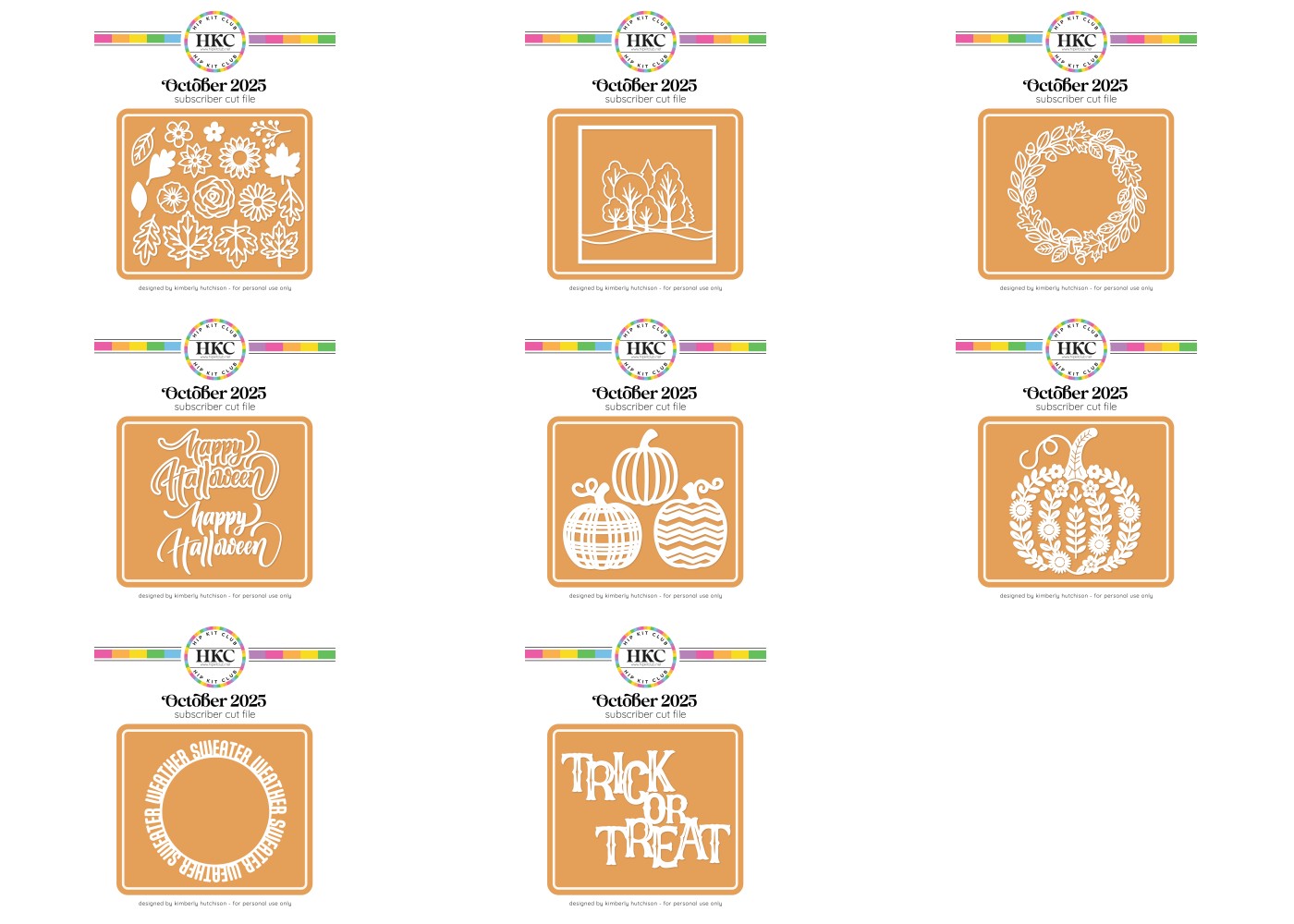 Discover the October collection of Kimberly Hutchison's Cut Files, perfect for all your Cricut and Silhouette crafting needs.